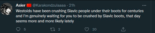 Another strange Eastern European fash, similar to EasternCrow in that they will not hesitate to harass people to defend other members of the fash furry scene such as Lodge and Sabourin. Their account is a constant stream of nationalist/racist hatred at that as well.